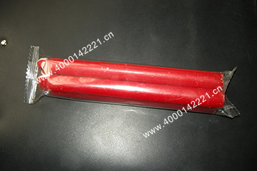 本次案例是客户一个蜡烛厂包装蜡烛的一个例子,以包装两条或四条为例;这次的包装效果超棒,白色的包装袋透明发光,里面包装的红色蜡烛清晰可见;包装袋封口精密,切口整齐;我公司生产的包装机SMZ-420绝对不逊色于包装机机械同行的产品,以不断的改进来增强在市场上的竞争力度,十多年的品牌,信心的保障!